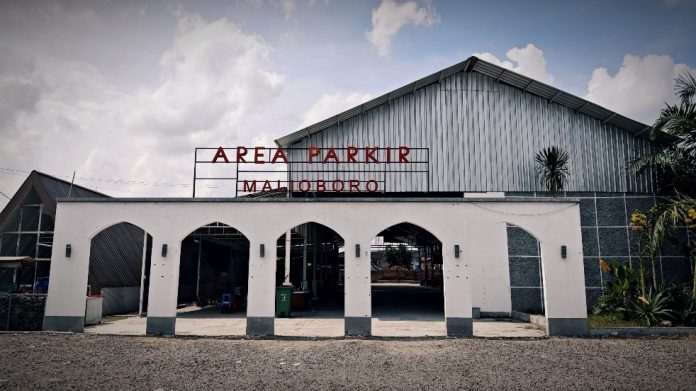 Gapura bertulisan “Area Parkir Malioboro” yang terlalu rendah memaksa bus bermanuver mundur-maju, memperlambat arus dan membatasi kapasitas. Padahal, jika gapura ditinggikan, bus bisa masuk dari timur, parkir di selatan hanggar, lalu keluar ke barat tanpa kesulitan.