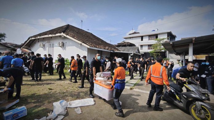 Rumah di Jalan Hayam Wuruk No 110 saat proses penertiban berlangsung. (zukhronnee muhammad)