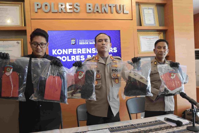 Petugas memperlihatkan barang bukti yang diamankan dari para pelaku. (dok polres bantul)